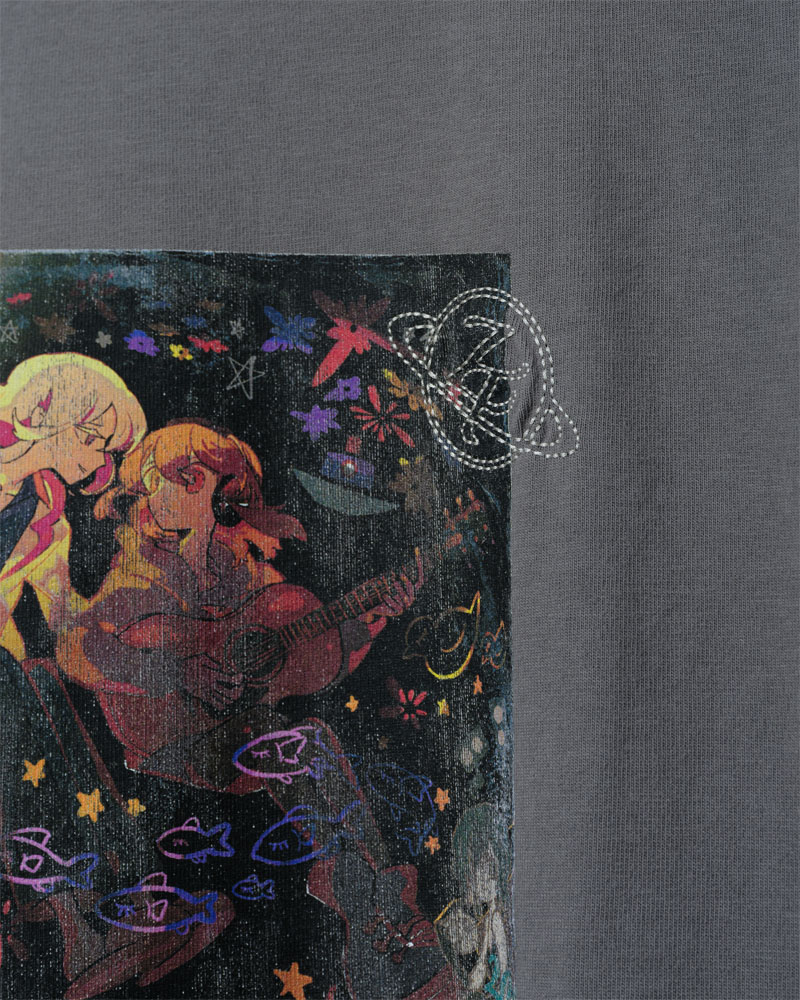 フロント右下には布タグ付き、イラストは掠れプリント
