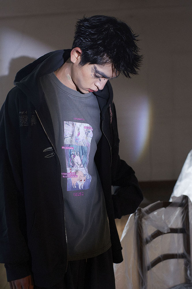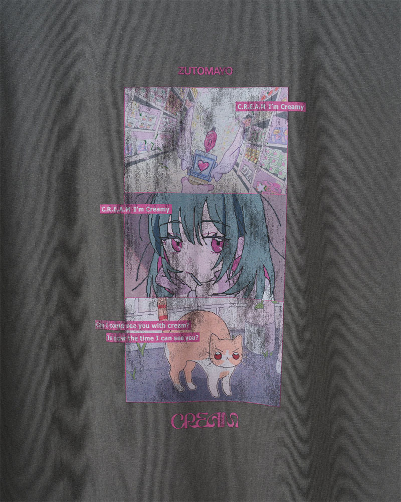 フロントのZUTOMAYO、バックのCREAMは刺繍