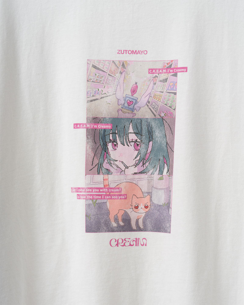 フロントのZUTOMAYO、バックのCREAMは刺繍