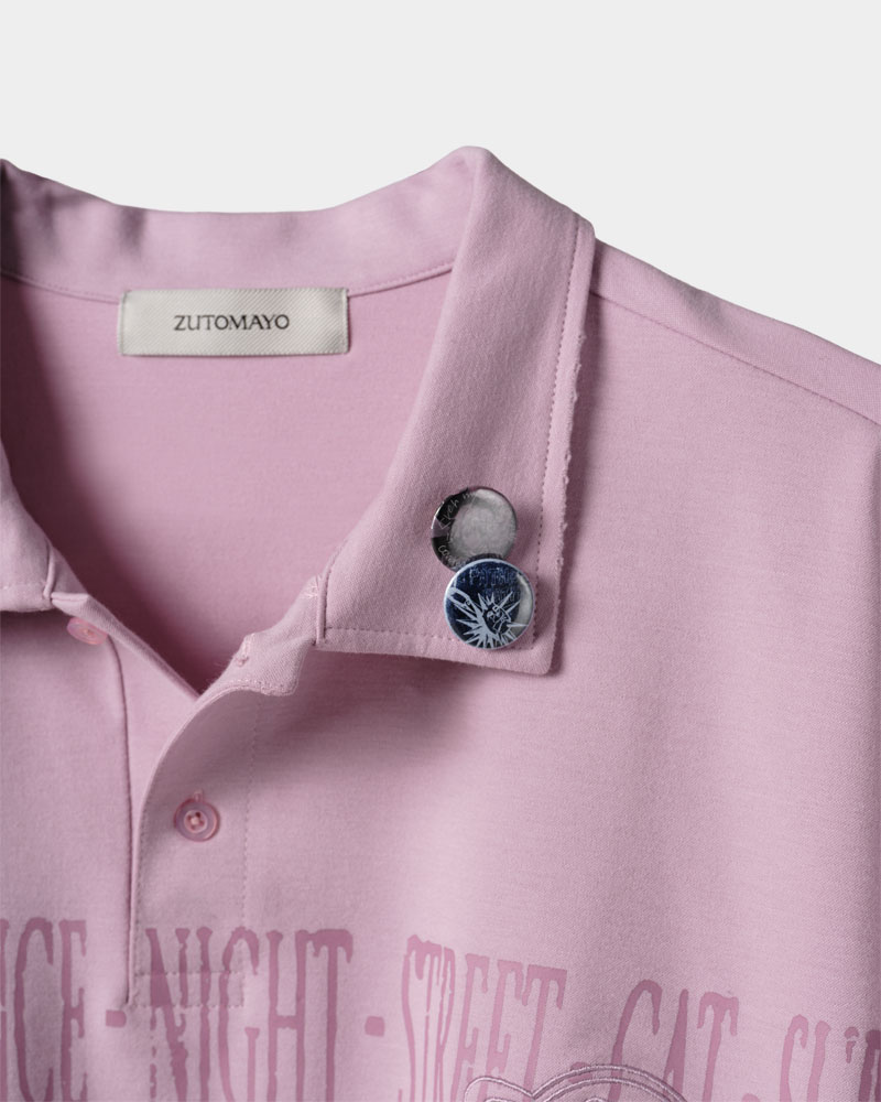 缶バッチ2個が別付属 (他カラーのポロシャツも含めデザイン共通) ※襟元装着推奨