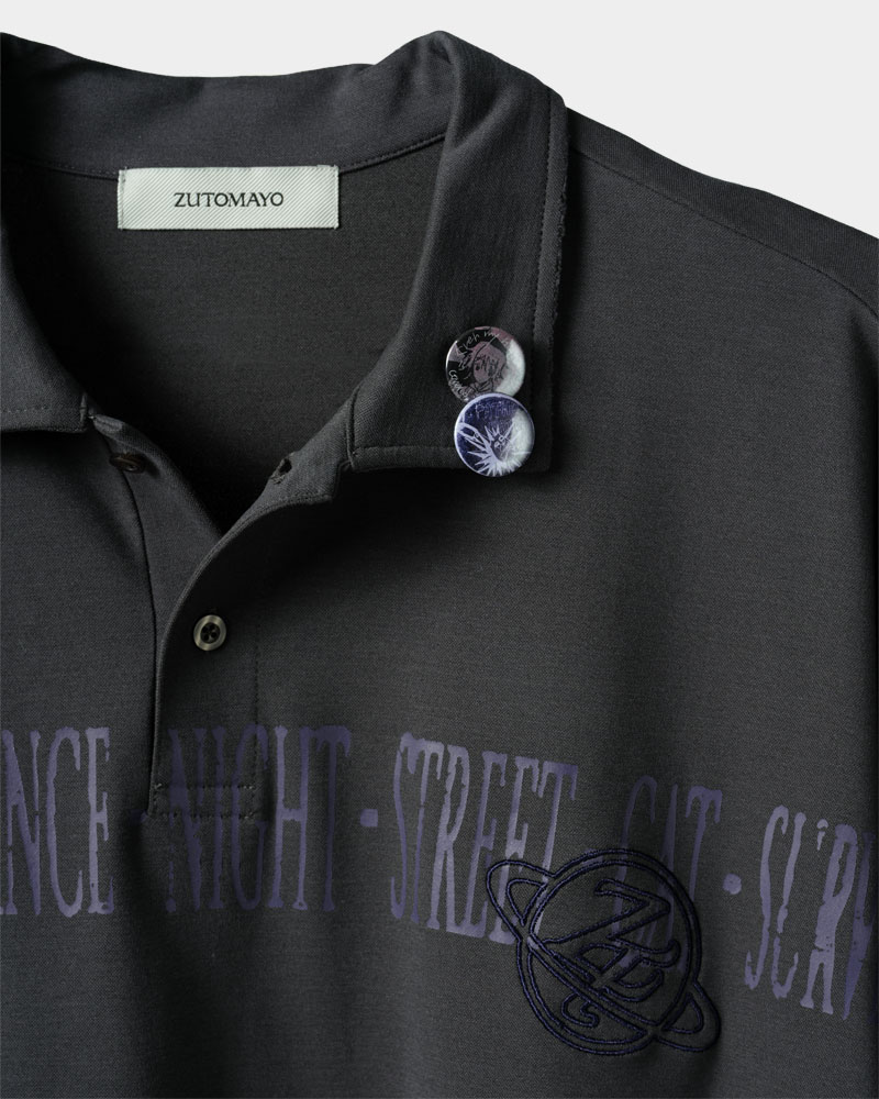 缶バッチ2個が別付属 (他カラーのポロシャツも含めデザイン共通) ※襟元装着推奨
