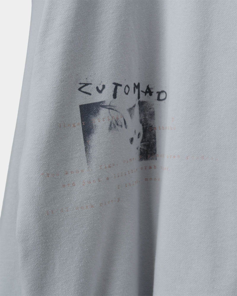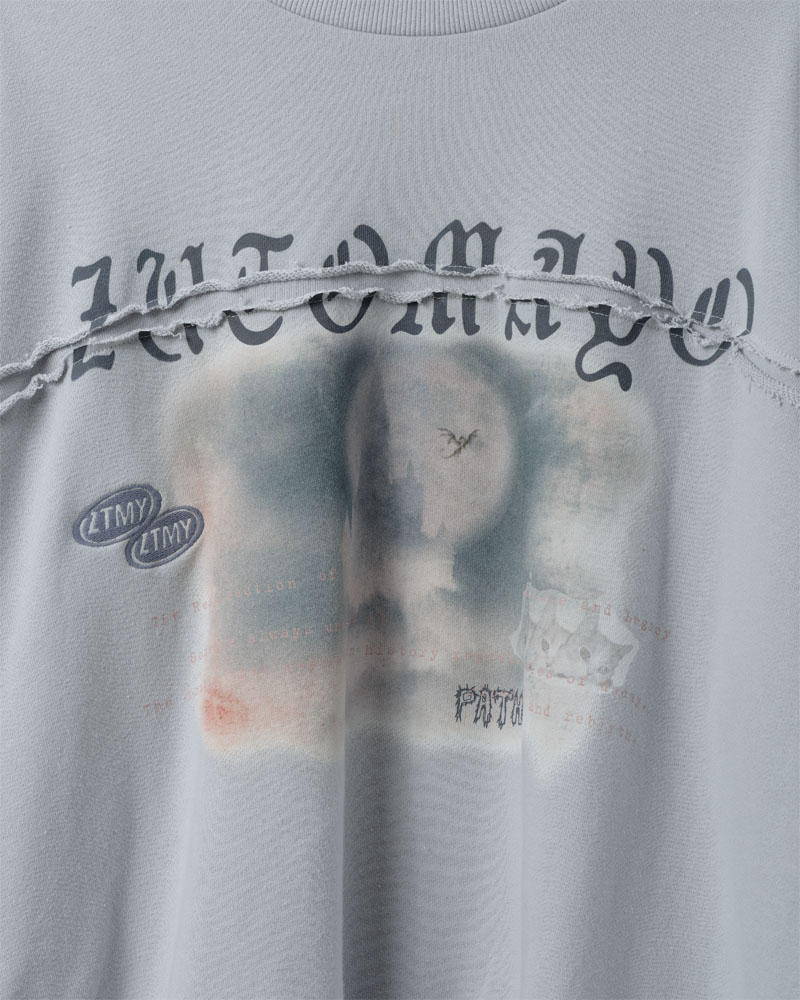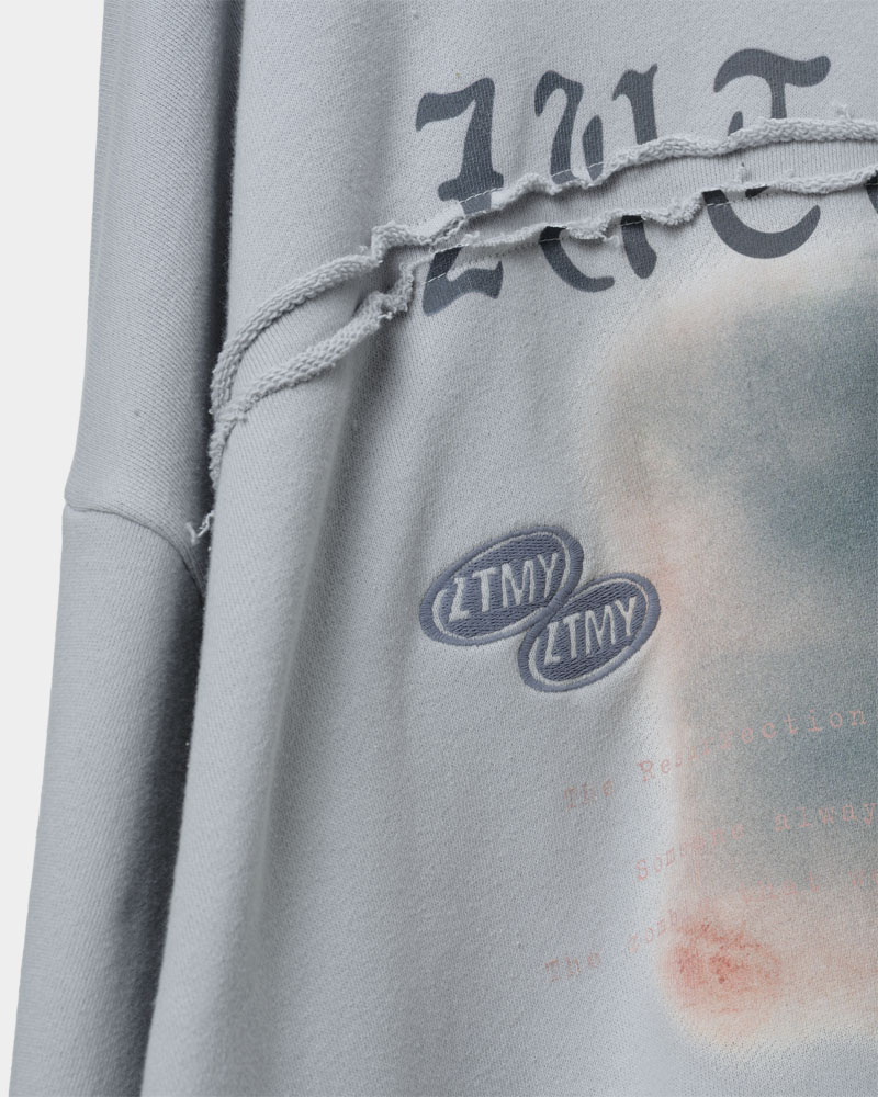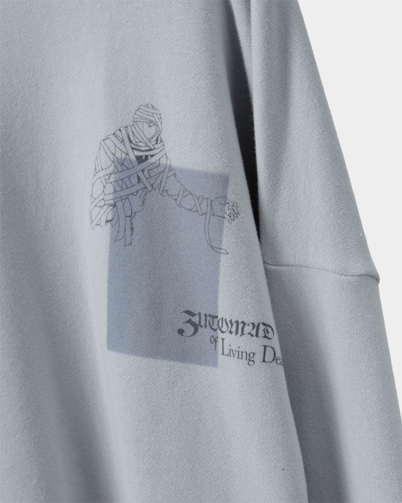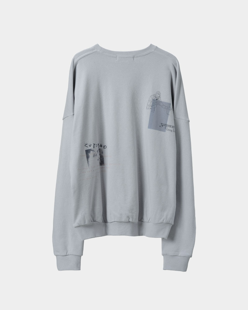 胸元の切り返しが特徴的でスモーキーなスウェット