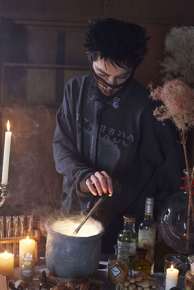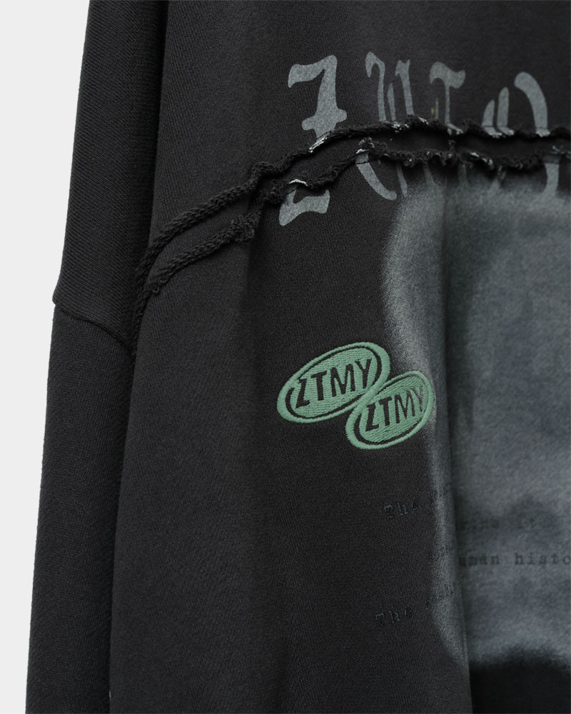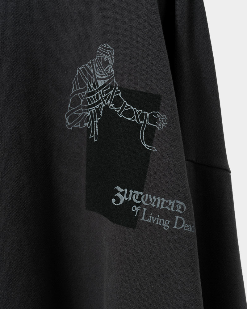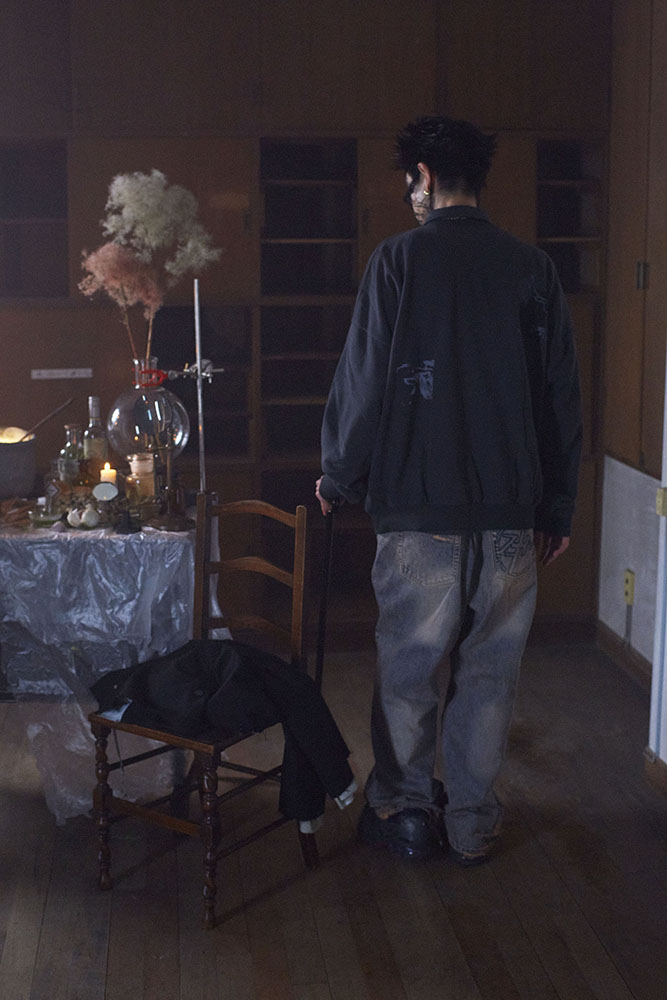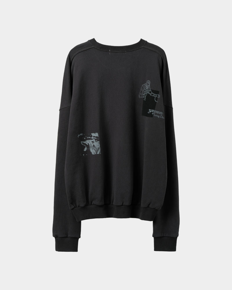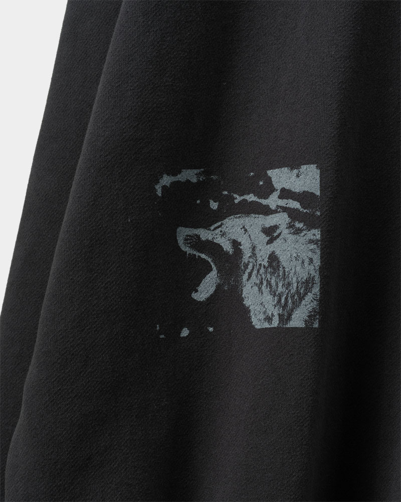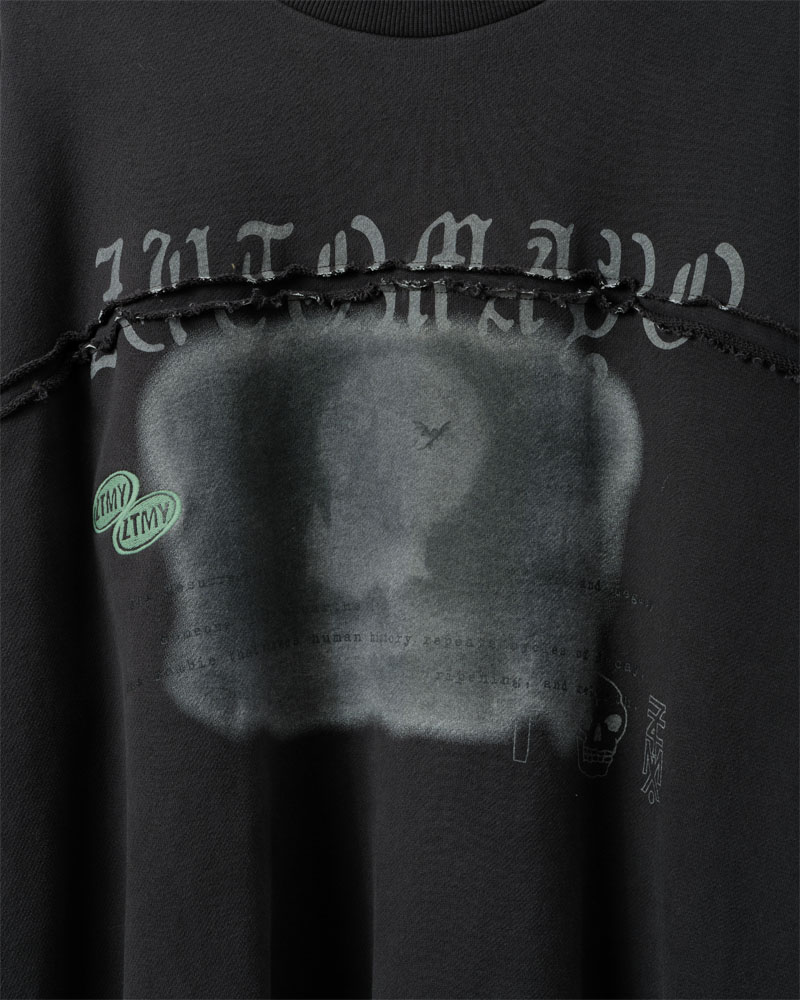 胸元の切り返しが特徴的でスモーキーなスウェット