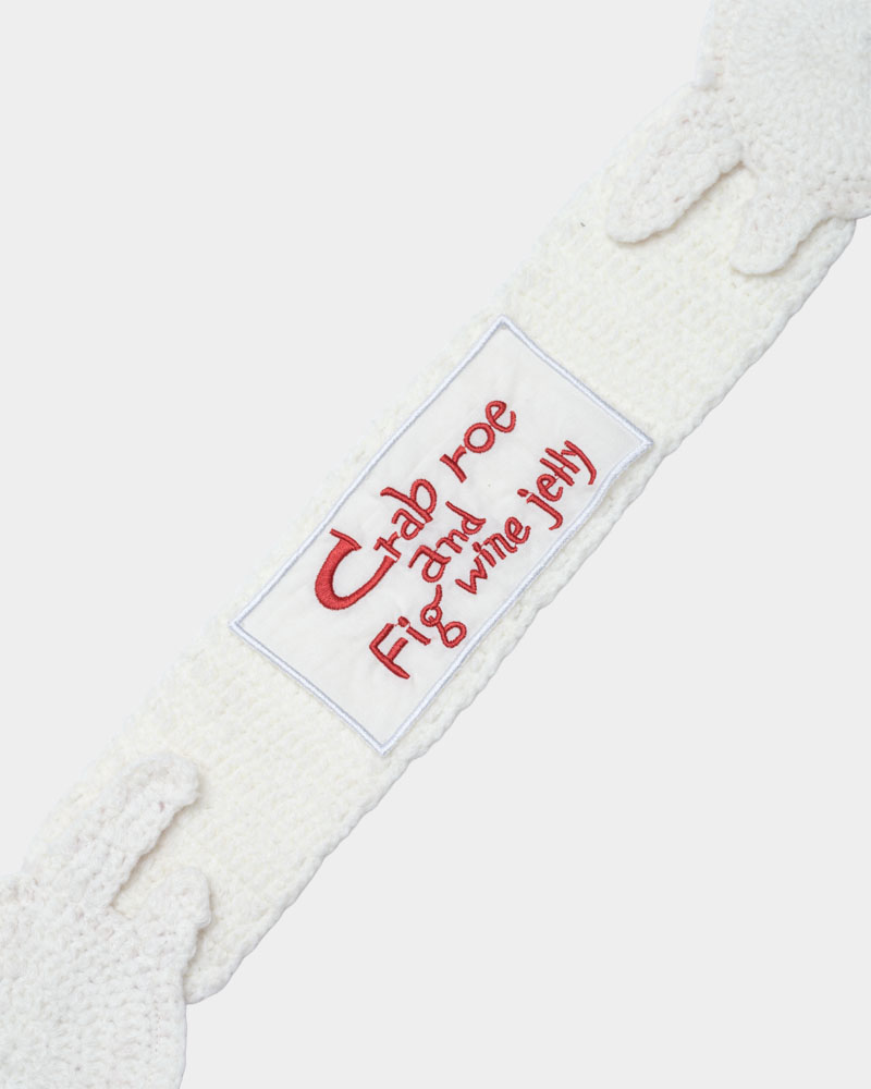 食欲そそる蟹料理の刺繍の文字が施されたイヤーマフ