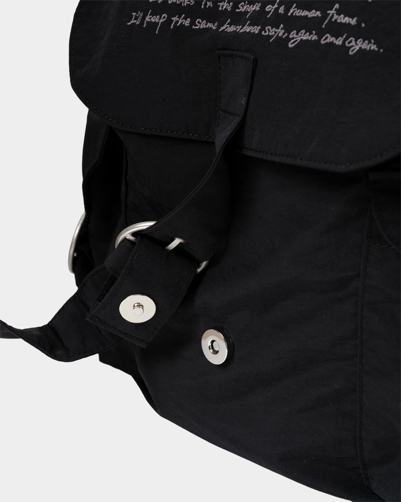 蓋部分には刺繍、内側にはポケット1つとタグが縫い付けられています