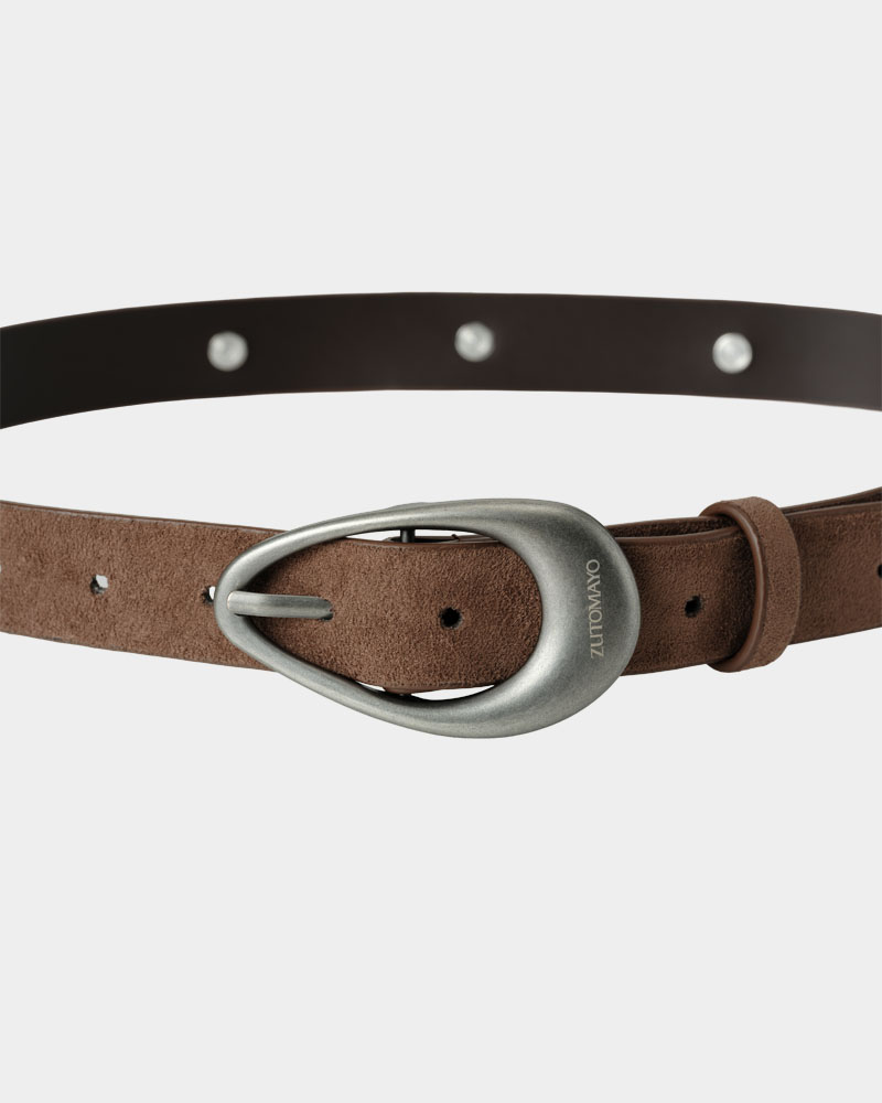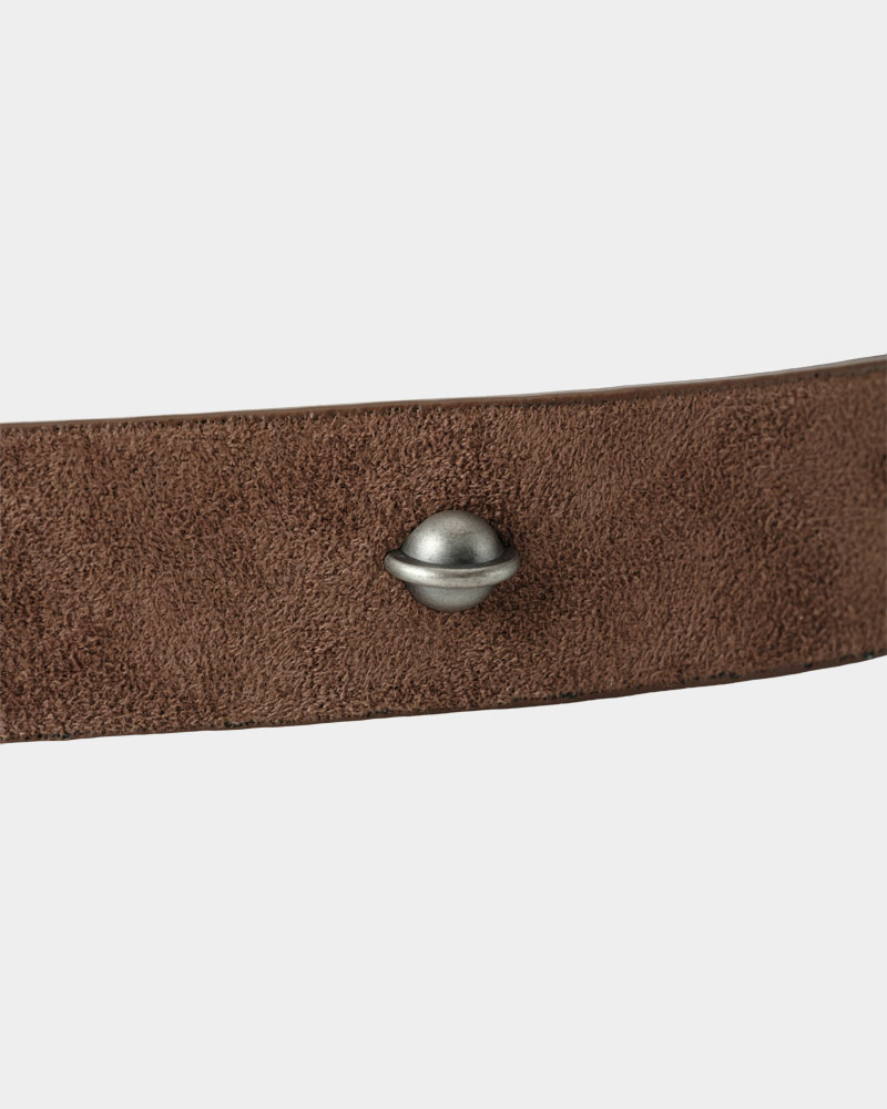 サターンモチーフのチャームがついたフェイクレザーのベロア風ベルト