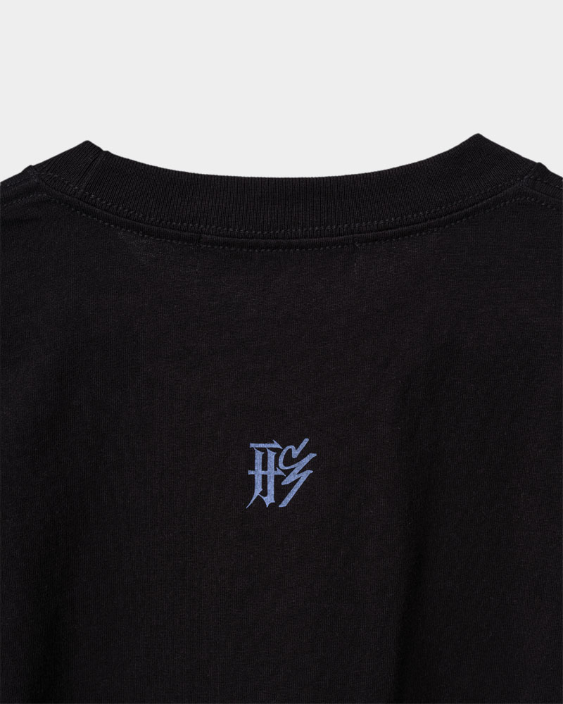 バックの首元には形の文字をアレンジしてワンポイントプリント