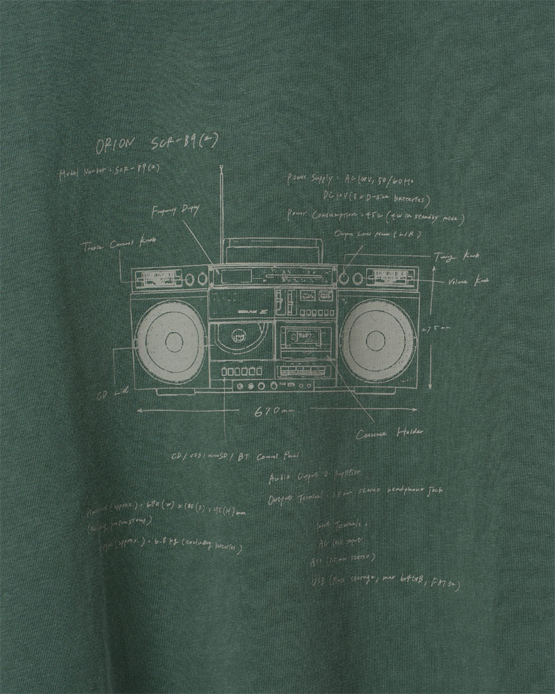 ZS Radio Cassetteを設計図のようにデザインしたTシャツ